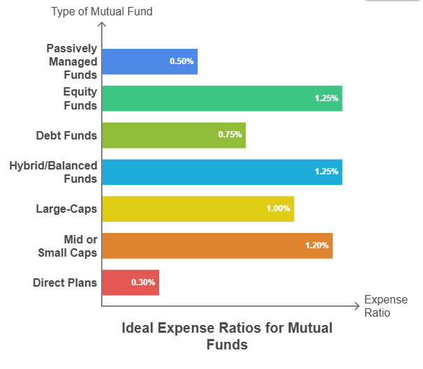 Here are the general ranges for an ideal expense ratio for different types of mutual funds: