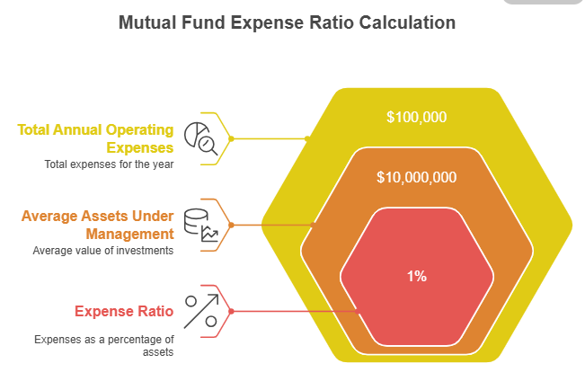 The expense ratio shows how much a mutual fund spends each year to operate, compared to its average AUM (Assets Under Management). Investors do not pay this fee separately; instead, it is taken out daily from the fund’s assets and shown in the daily NAV (Net Asset Value). These costs reduce the fund’s value that investors see each day, which lowers their overall returns over time.