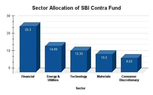 The largest share, 26.3%, of the SBI Contra Fund has been invested in the financial sector. And nearly 14% and 12% of the fund has been invested in energy & utilities and technology sectors, respectively. All three of these sectors hold strong potential in the future.