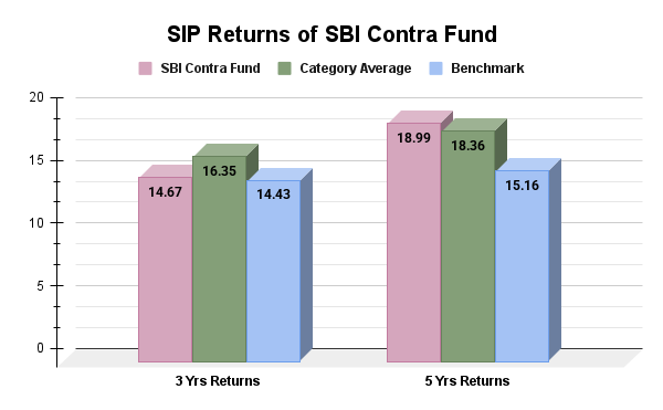 These returns show that the SBI Contra Fund has delivered stronger performance than its benchmark, but with lower consistency over 3-year periods. However, the fund made a comeback over 5 years, showing that patience pays off with this fund.