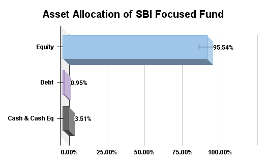The SBI Focused Fund (Previously known as SBI Focused Equity Fund) is an open-ended Equity mutual funds scheme from SBI Mutual Fund, launched on January 1, 2013. It primarily invests in a concentrated portfolio of equity and equity-related instruments to gain capital appreciation in the long term. It typically holds a maximum of 30 stocks from different market sizes to achieve strong growth. The fund is highly suitable for aggressive investors seeking long-term capital appreciation through a focused portfolio.