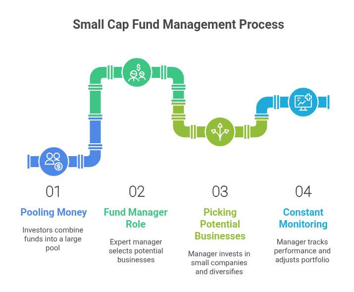 You must be wondering how small cap funds put your money to work. Actually, it is a mix of teamwork and expert management of money. Here is a step by step breakdown: